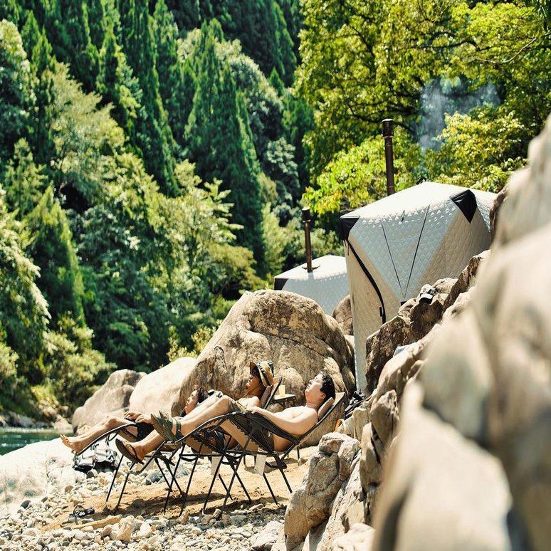 ITADORI SAUNAは、岐阜県の美しい板取川のほとりにある アウトドアサウナ施設 です。透明度抜群の川と豊かな森に囲まれ、都市部から離れた静かな環境の中でサウナを楽しめます。