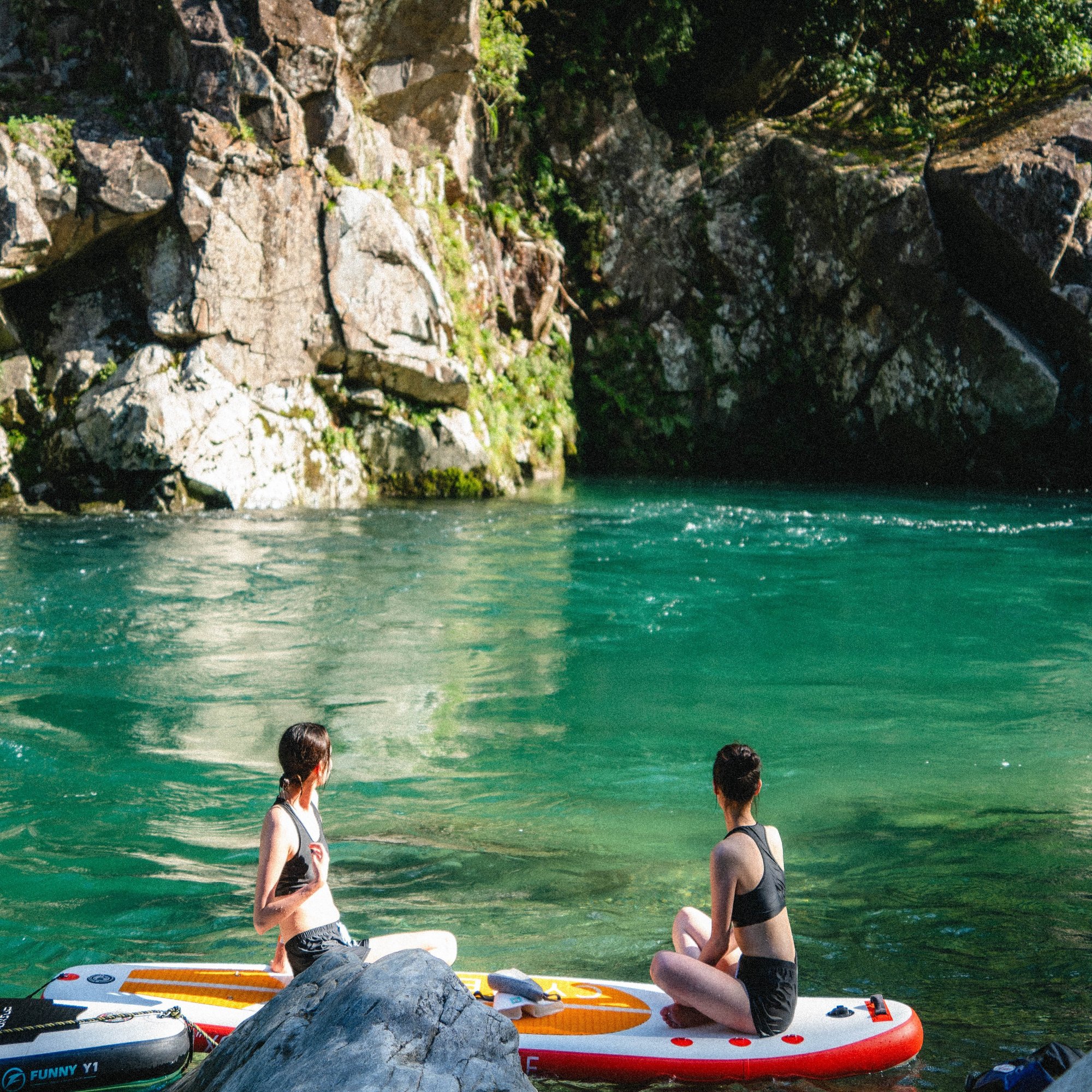 板取川にダイブの後は、360°自然に包まれ、川の音や鳥のさえずりに耳を澄ませ、五感で自然を感じながら『ととのう』ことができます。