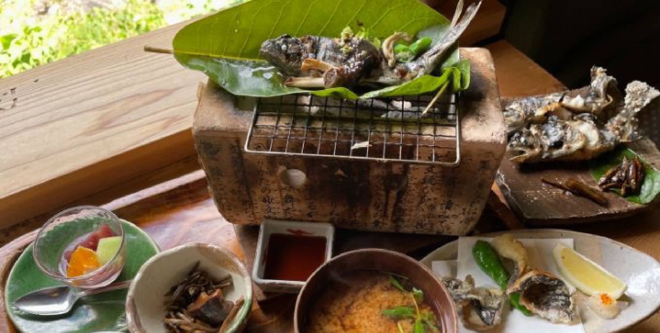 Enjoy delicious river fish dishes and game meat at this popular restaurant. Savor the fresh taste of grilled ayu (sweetfish) caught directly from the Itadori River, as well as other delectable river fish dishes.